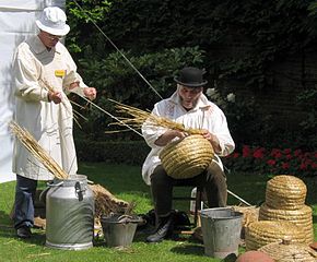Persoana care făcea coșuri împletite pentru albine se numea ”skepper” . În Anglia grosimea împletiturile din paie era controlată cu ajutorulu unui inel din piele sau cornul unei vaci numit ”girth” .